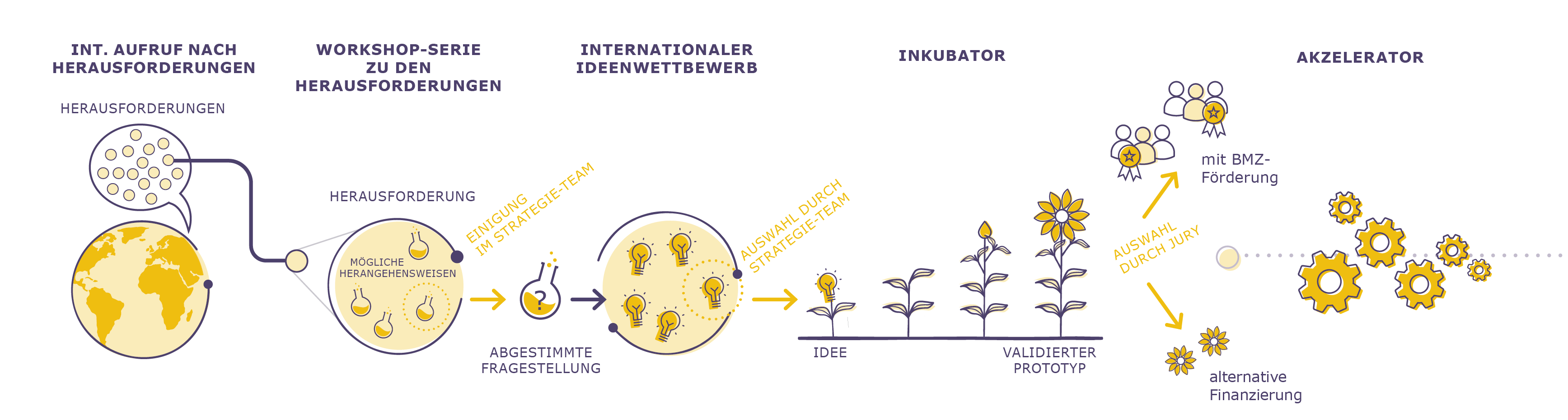 Das Decentralised Development Lab startete Anfang 2021 mit einem Call for Challenges, der über die Bundesländer und Partnerländer der deutschen Entwicklungszusammenarbeit verbreitet wurde. Weitere Informationen zu den Challenges finden Sie in der Broschüre (Seite 7). The Decentralised Development Lab started in the beginning of 2021 with a that was spread across the German federal states and partner countries of German development cooperation.